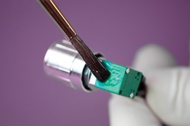 Avoiding UV wavelengths allows electrodes to be created on fragile living surfaces.