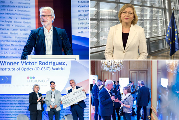 The event commenced with a spectacular light show commemorating Photonics21’s two-decade journey. Attendees enjoyed a striking LED performance by renowned light artist Lemmi. Opening the meeting, Lutz Aschke, President of Photonics21 and CEO of Photonics Systems Group (pictured, top left), outlined a strategic vision for photonics in the upcoming EU Framework Programme 10 (FP10).