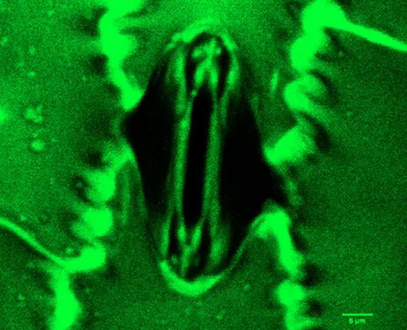 Confocal laser microscopy helps quantify processes underway at stomata.
