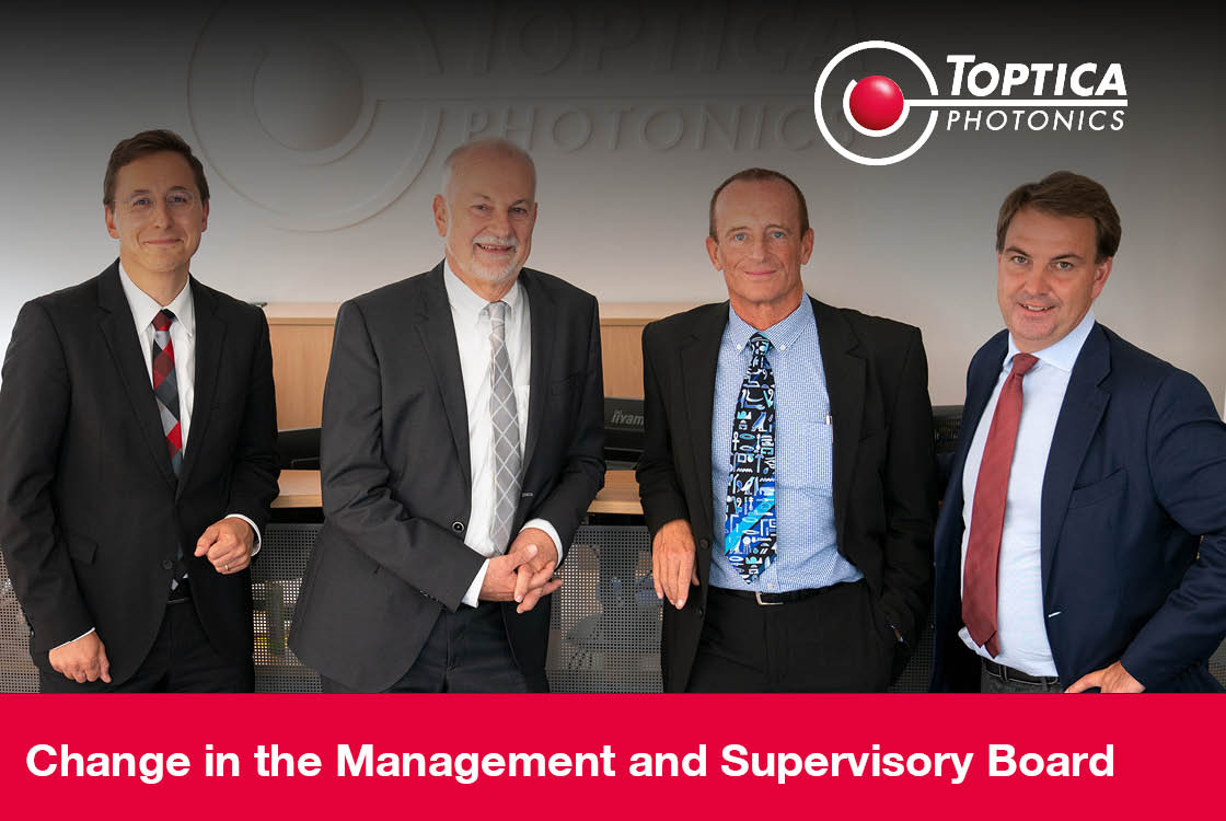 Graefelfing (Munich) Germany -- As of 01.10.2020, Dr. Thomas Weber (pictured above, second from right) will step down from the Executive Board of TOPTICA Photonics AG to the Supervisory Board. After 22 years with the company, the long-standing founding board member (Finance & Operations) is retiring from his leadership role in the company, which continues to grow strongly.