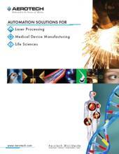 26 Jun 2008 New brochure for Laser, Medical and Life Sciences applications Aerotech have released a completely updated and redesigned Automation Solutions brochure for Laser Processing, Medical Device Manufacturing and Life Sciences. The 36 page information resource is the latest in a series of Automation Solutions publications that demonstrate Aerotech’s significant ability to deliver low cost of ownership motion system solutions through advanced motion controls and superior mechanical systems that provide increased speed and throughput, superior accuracy and improved reliability.