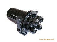 Fiber optic splice closure/box, with metal hoop, dome, vertical type, 4 (4x16mm) inlet or outlet ports, 1~4 trays for bunch fiber. For bunch fiber - 037 tray (110*93mm) with 12 cores and heat shrinkable protective sleeves, accessories, 288x178mm.
