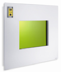 The new patented active cabinet window solves this problem in an ideal and easy way by integrating the implemented electronic into the safety circuit of the laser system. In the event that a laser beam hits the window and a sufficient part of the radiation couples into the sensor in the window frame, the laser will be shut-down immediately before radiation leaks from the back side of the window. Incredibly this system is totally insensitive against scattered and process light.