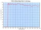 We have a range of standard filters with cut on wavelengths at 355, 488, 514, 532, 633, 785 and 1064nm. Custom designs are also available for any wavelength between 355nm and 1064nm. The edge steepness performance is <1.5% whilst the damage threshold is approx >1Jcm2@ 10ns pulse at 532nm.