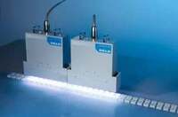 Providing a light exit area with a width of 48.1 mm, DELOLUX 202 / 400 is particularly suitable for bonding small components in linear production systems. Ideal application areas include miniloudspeaker bonding or manufacture of small switches. Thanks to its compact design, DELOLUX 202 / 400 is good to integrate into production systems with limited space. The double length of the light exit area allows reliable adhesive curing even at elevated belt speeds. Of course, the lamp heads can seamlessly be arrayed both in x- and y-direction. This is how a broad variety of irradiation geometries can be created. The DELOLUX 202 / 400 lamp heads can be operated with the existing DELOLUX 20 / 400 ballast.