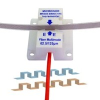 The fiber optic linear incremental encoder system is based on an innovative optical technique embodied in Micronor’s U.S. Patent 7,196,720 in which an electrically passive, all-optical sensor and remote controller are interconnected via a duplex fiber optic link. The system uses a coarse wavelength division multiplexing technique incorporating two lasers representing the A and B quadrature signals. An encoder film strip passes through the MR303 optical read head, modulating the A and B optical signals. The remote MR302-2 Controller provides both the optical input to the MR303 Sensor and processes the modulated optical return signal.