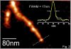 The Raman technique involves placing a sharp 15-nm-diameter silver tip close to the focus of a 633 nm laser beam. The tip itself is held just 1 nm above the sample and scanned across it. "The exciting laser produces a localized field at the tip apex," explained Novotny. "This field interacts with the vibrating atoms in the sample." The scattered light is gathered to form an image.