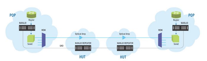 | MagiQ says its system operates at telecom wavelengths over standard fiber and is compatible with data rates of up to 1 Gbit/s and wavelength division multiplexing (WDM). The idea is that the laws of quantum physics are exploited to give a communication link that is guaranteed to be completely secure. (Credit: MagiQ) |