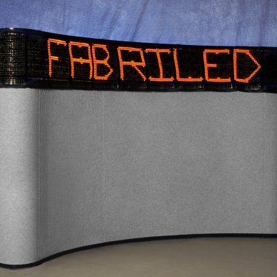 | The display is flexible and can be bent around corners and conform to any surface. Sarnoff says that an 8 foot sign can be rolled into a 6-inch diameter tube without suffering any damage. It is also light, weighing just over 50g per square foot. (Credit: Sarnoff) |