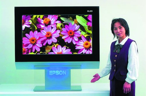 Seiko Epson’s massive 40 inch prototype boasts a resolution of 1280 x 768 pixels (WXGA) and 260 000 colors. The company is planning to commercialize the technology by 2007. (Credit: Seiko Epson)
