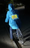 The 4096 color LED screen comprises a flexible circuit board packaged in a fabric layered sandwich. Weighing 150 g (including battery) and measuring 10 x 7 cm, these displays are lighter, more colourful and easier to fit in clothing than the team's award winning fiber optic screens showcased at the Avantex textile trade show in 2002. The new removable screens insert into a special pocket in the garment and connect to a rechargeable battery with 4 hour charge life.