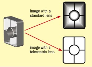 A telecentric lens dissolves the perspective. Credit: Sill Optics