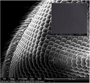 Biotemplating experts based in Spain and the US have reproduced a fruit fly's compound eye in chalcogenide glass – a material with excellent infrared optical properties and good mechanical durability. Pleased with the result, the team is now busy exploring a wide range of uses for its ultra-compact lens (Nanotechnology 19 355704).