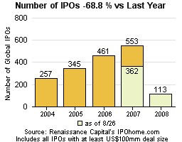 Number of IPOs is down 68.8% compared to last year. Source: Renaissance Capital's IPOhome.com.