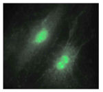 To test their QDs, the researchers added the suspension to cell cultures of 3T3-L1 fibroblasts. After incubation overnight, the cells were rinsed twice in Krebs buffer and cell luminescence was observed using a fluorescence microscope under UV/blue light excitation (see figure).