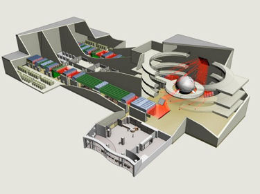 Aren't physicists already studying inertial confinement?They are, but of a different sort. Scientists know that inertial-confinement works, since experiments carried out by the US military in the 1980s showed that the X-ray output from an atomic bomb could ignite little capsules of deuterium-tritium. These bombs use an initial fission explosion to rapidly compress a deuterium-tritium mixture, with shock waves created inside the mixture heating it to the point of ignition. This "central ignition" process is being reproduced in a controlled way at billion-dollar facilities — the National Ignition Facility (NIF) at the Lawrence Livermore Laboratory in the US and the Mégajoule laboratory in France — where a single set of lasers both compresses and heats the fuel. HiPER, on the other hand, will use a separate laser pulse to do the heating, a process known as "fast ignition" because the second laser must heat the fuel within 10-11s of the implosion.