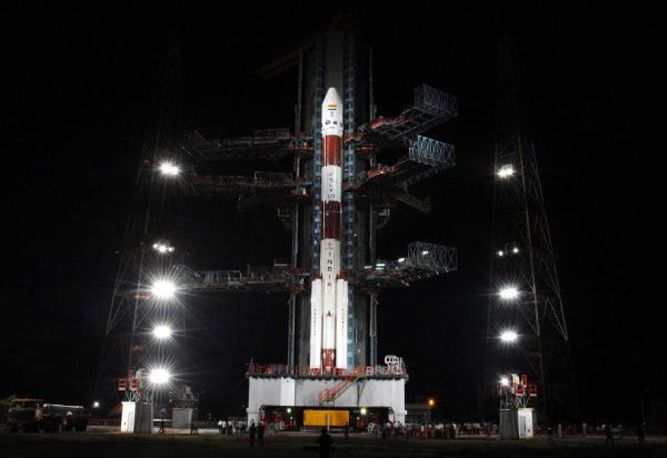 Chandrayaan–1 on the launchpad (Courtesy: Indian Space Research Organisation).
