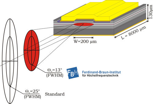 The diode lasers have a vertical divergence as low as 13ยบ and 95% of the optical power is enclosed in an angle of 21%.
