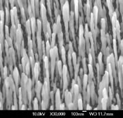 Emerging from the shadowsJen and his colleagues first vaporized a block of silver by firing electrons into it and then directed the vapor at two-inch substrates of silica material. Deposits tend to accumulate in patches on the substrate but - at certain angles to the substrate norm - nanorods can grow preferentially towards the incoming vapor because of the "self-shadowing effect".