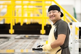 Stock price up 9% after the bellwether photovoltaics firm lifts sales and profit forecast in transitional year.