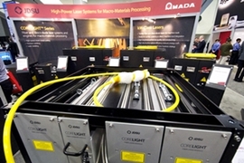 Industrial laser firm reports lower total sales but higher profit margins ahead of planned merger with Coherent.