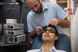 Head-mounted system monitors blood flow while a patient holds their breath.