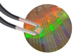 A tightly-controlled 8-wavelength laser array on a silicon wafer with matched power and uniform spacing.