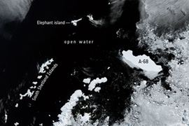 The 100km-long "A-68" iceberg, which calved from Antarctica in 2017, is now 1000km away from birthplace and shrinking.