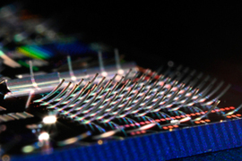 Photonic device that curls beam off chip surface could advance displays, communications, quantum computing.