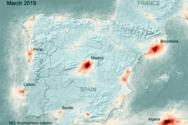 Data from Copernicus Sentinel-5P reveal strong reductions in NO2 pollution levels over Paris, Rome, Madrid.
