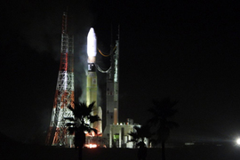 Non-lethal incident prevents lift-off of optical communications system, developed by Japanese team.