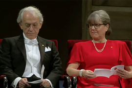 Laser scientists Mourou, Strickland and Ashkin (by proxy) presented Nobel Prizes by King of Sweden, also sharing $1 million.