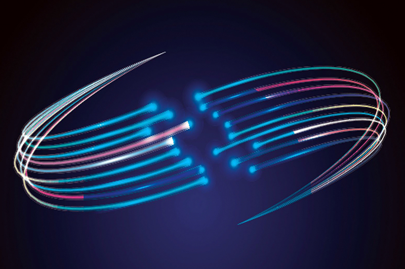 The researchers succeeded in transmitting 1.8 Pbit/s, which they say "corresponds to twice the rate of total global Internet traffic". The light source is a custom-designed optical chip, which uses the output from a single infrared laser to create a "rainbow" spectrum of many frequencies. By this means, the one frequency of a single laser can be multiplied into hundreds of frequencies in one chip.